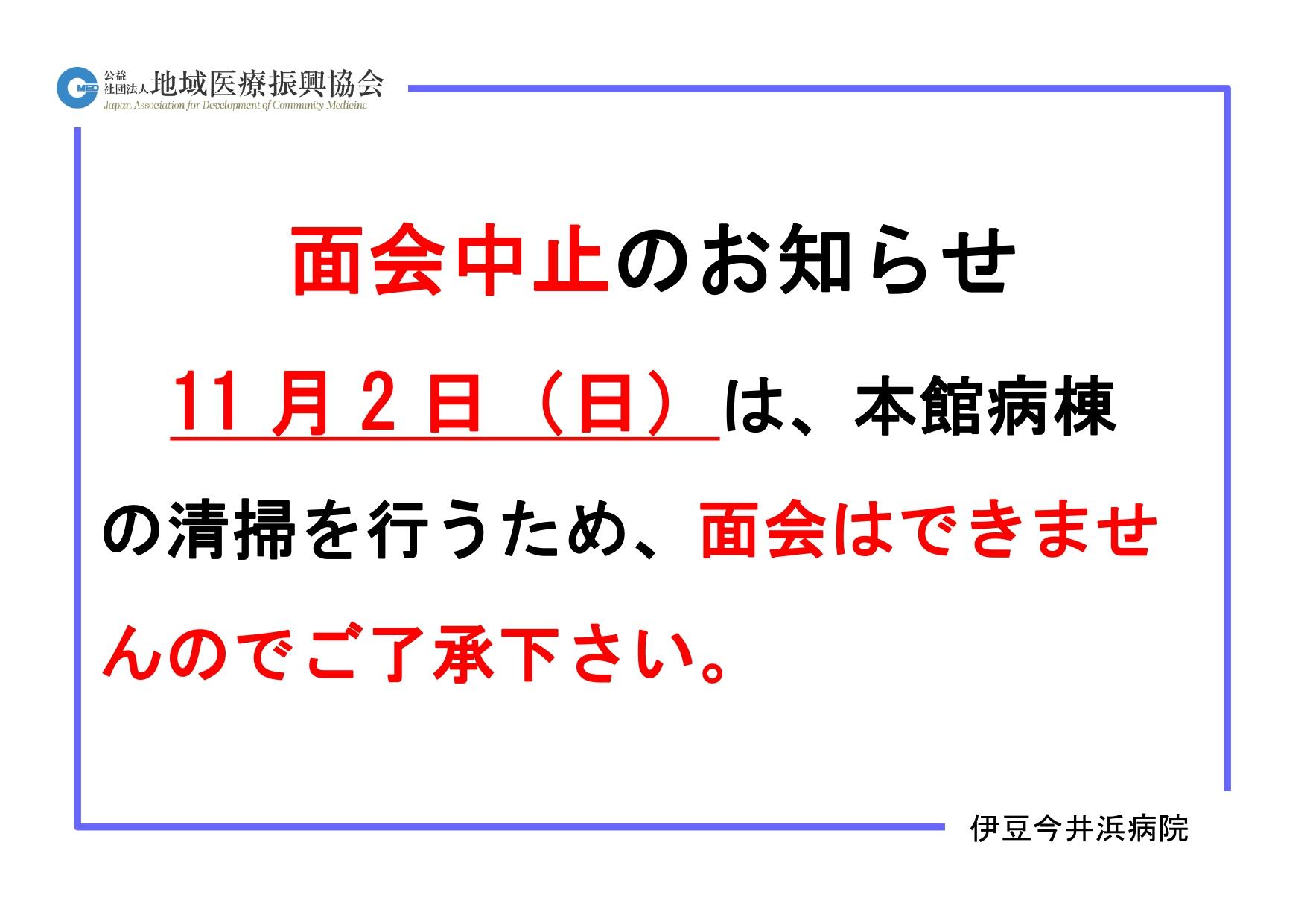 > 本館病棟 面会中止のお知らせ(11月2日)